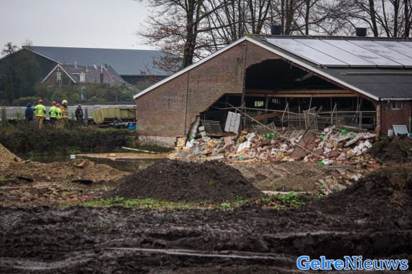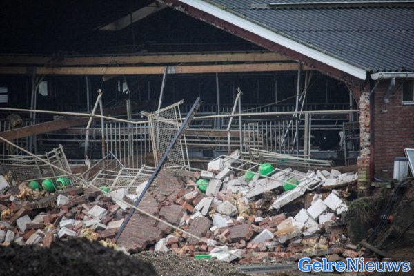 HALL – Op de Boerenstraat in Hall, nabij Eerbeek, is een muur van een koeienstal grotendeels ingestort. Hoe dit kon gebeuren, is nog niet bekend.