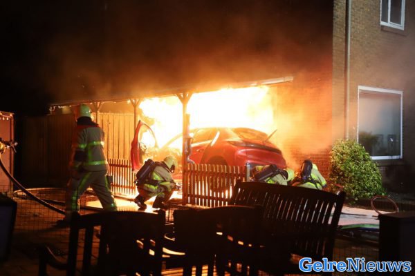 De brandweer had moeite gehad om de brand uit te krijgen, omdat de brandstoftank kapot was gegaan. Het gaat om een redelijk nieuwe auto uit december 2019. De brandweer wist te voorkomen dat de brand oversloeg naar de woning.