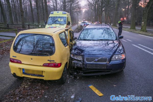 Het ongeluk gebeurde rond 8.00 uur. De gele auto wilde links afslaan naar de manege, maar zag vermoedelijk de tegemoetkomende auto over het hoofd. De bestuurder van de donkerblauwe auto heeft nog geremd, maar kon het ongeluk niet meer voorkomen.