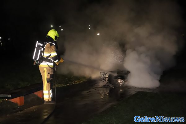 De scooter brandde volledig uit. De oorzaak van de brand is onbekend.
