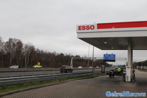 Een auto, komende vanaf de A12, kwam zonder benzine te staan op de vluchtstrook van de snelweg. De drie inzittenden hebben de auto met de hand honderden meters verderop geduwd om aldaar tegenover een tankstation in de berm te parkeren. De bestuurder van de auto is daarna zes rijstroken van de drukke A50 overgestoken om bij het tankstation aan de overkant een jerrycan benzine te halen.