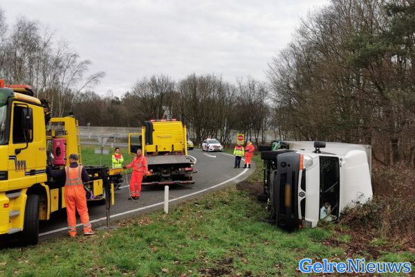UGCHELEN – Zaterdagochtend om kwart over tien heeft er een ongeval plaatsgevonden op de op- en afrit A1 Apeldoorn West. Een koeriersvrachtwagentje was op zijn kant geraakt bij het maken van een bocht.