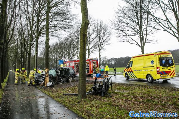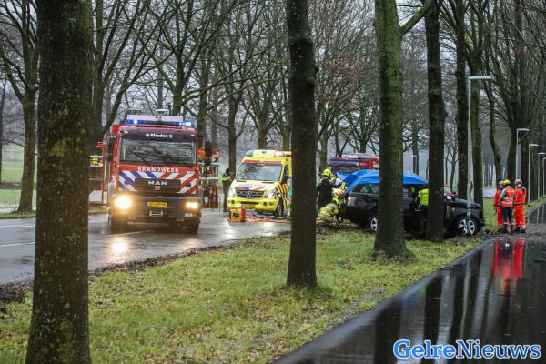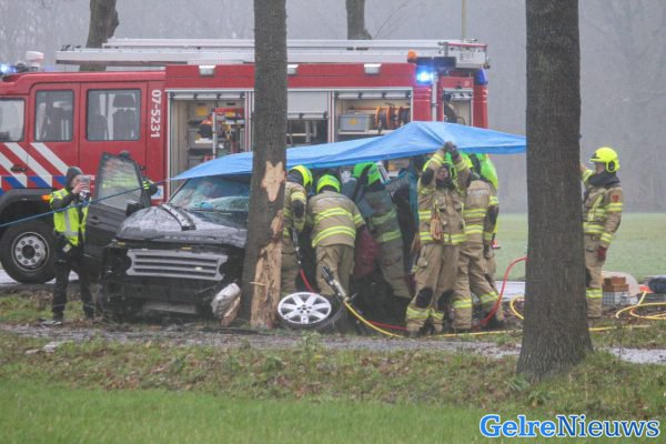 Meerdere brandweerwagens en drie ambulances zijn ter plaatse. Ook het personeel van de traumahelikopter is opgeroepen en ter plaatse gekomen. De auto is hard op een boom gebotst door, zoals het er nu uitziet, een grote plas op de weg. Mogelijk is de bestuurder hierdoor de macht over het stuur verloren en vervolgens op de boom geknald. Volgens omstanders zou op deze weg bij hevige regenval soms wel 10 centimeter water op de weg liggen, wat fors hinderlijk en gevaarlijk is voor automobilisten.