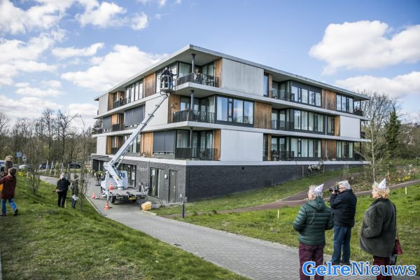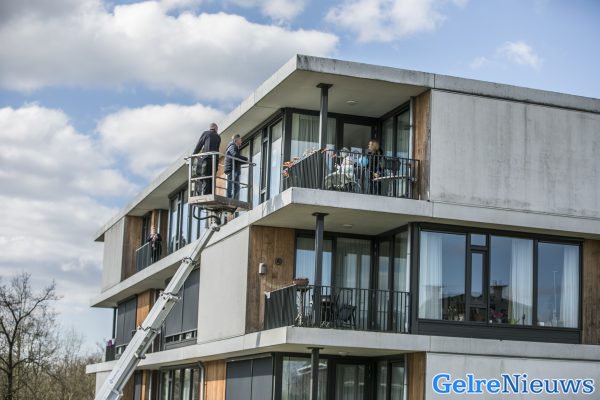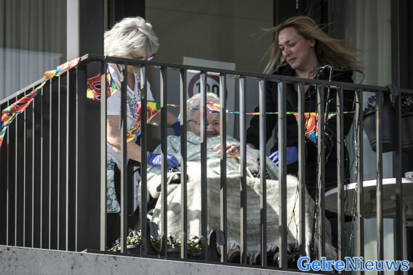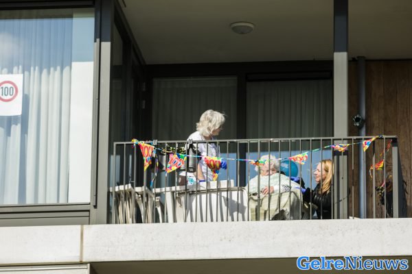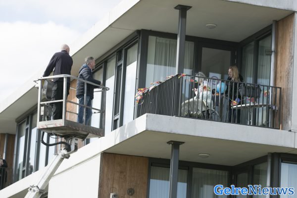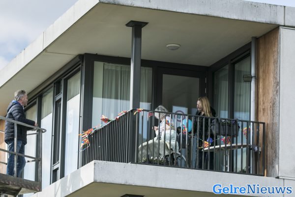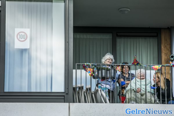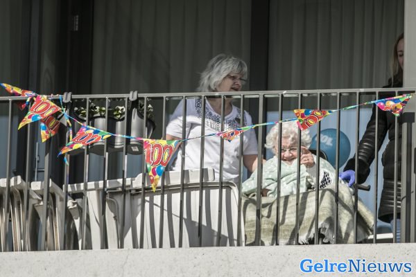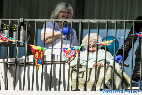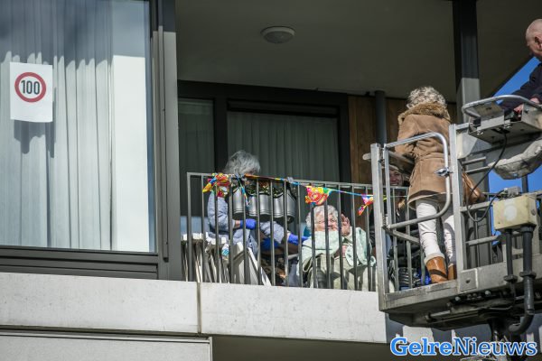 ARNHEM – Thea van Brandenburg in Arnhem is zaterdag 100 jaar geworden in zorginstelling Klingelpoort in Arnhem. Omdat familie niet meer naar binnen mag vanwege het coronavirus, bedacht de familie het om een andere boeg te gooien; ze kwamen met een hoogwerker naar boven.