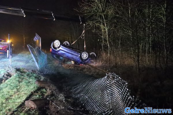 Rond 19.30 uur kregen de hulpdiensten de melding van het eenzijdige ongeval op de donkere weg. Door nog onbekende oorzaak raakte de auto van de weg en ramde daar bij een verkeersbord, vloog door tientallen meters hekwerk en belandde uiteindelijk op zijn dak op het militaire vliegveld Deelen.