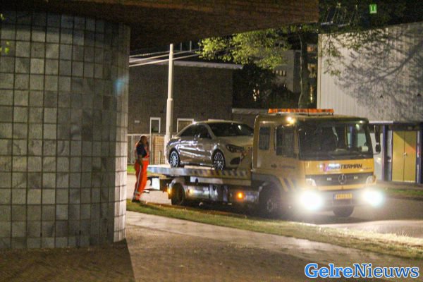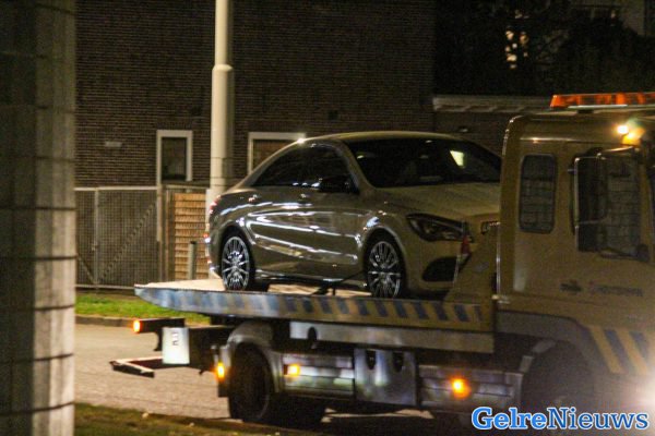 De twee sportauto’s, een Mercedes CLA uit 2018 en een GLE uit 2015, zijn afgesleept door een berger.