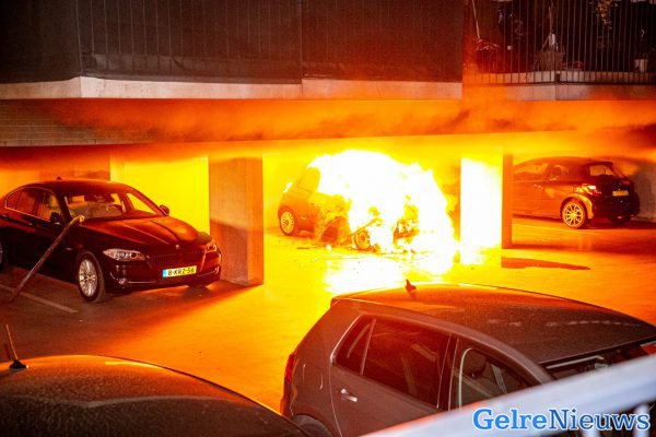 De auto stond geparkeerd onder een flat op de kruising IJssellaan met de Grevelingen in Arnhem en is hier vermoedelijk in brand gestoken. Hierbij vatte de isolatie van de flat zelf ook vlam. Daarom was de flat van ongeveer 40 woningen ontruimd. Voor zover bekend is er niemand gewond geraakt. Alle woningen zijn gecontroleerd door de brandweer, waarna de bewoners weer terug hun woning inmochten.