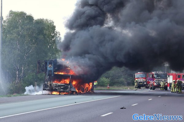 – Telekraan in de brand op A50: snelweg dicht