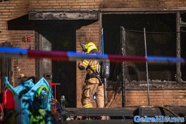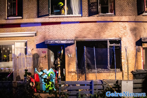 Omstreeks 02.15 uur werd de brandweer gealarmeerd. Al snel werd er opgeschaald naar middelbrand. Het kozijn van twee deuren, een raam kozijn, een trampoline en een scooter stonden in de brand toen ze aankwamen. De brand zorgde voor meerdere gevaarlijke situaties omdat bewoners door de brand moeilijk naar buiten konden komen. Een vrouw is in de ambulance gecontroleerd, ze hoefde niet mee naar het ziekenhuis.