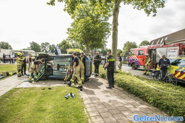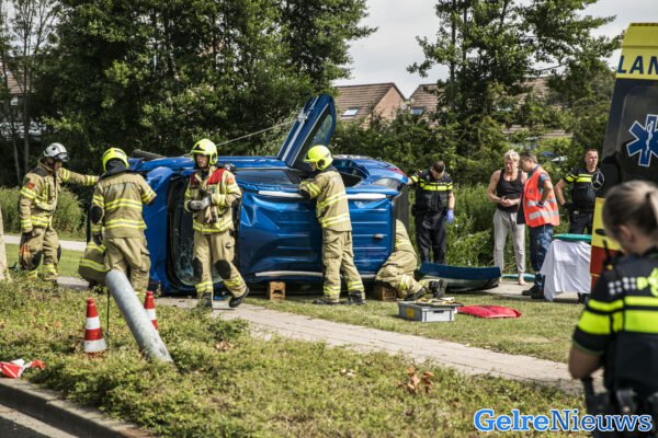De bestuurder, een man op leeftijd, raakte vermoedelijk onwel en is hierdoor van de weg geraakt. De auto raakte eerst een lantaarnpaal die eruit werd gereden en is vervolgens op de zijkant tot stilstand gekomen. De bijrijder, een vrouw op leeftijd, is door omstanders uit het voertuig gehaald en raakte niet gewond. De bestuurder is door de hulpdiensten uit het voertuig gehaald en vervolgend per ambulance naar het ziekenhuis overgebracht.