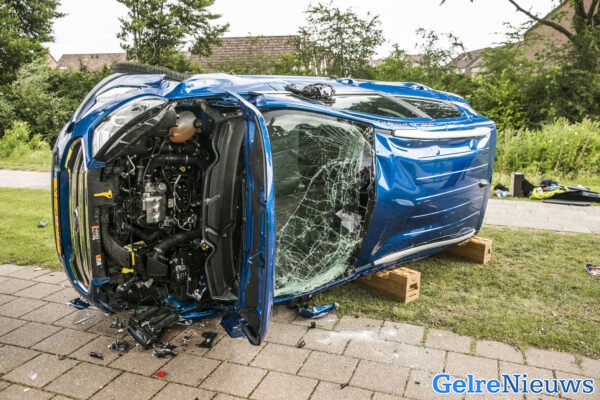 De weg is enige tijd afgesloten geweest en de auto raakte total loss.