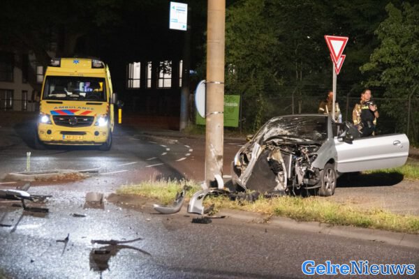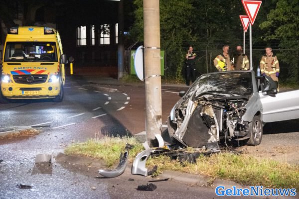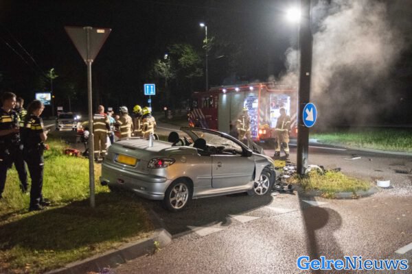 ARNHEM – Op de Utrechtseweg in Arnhem, ter hoogte van de rotonde met de Brinkweg, is een auto hard op een lantaarnpaal geknald. De bestuurder raakte gewond.