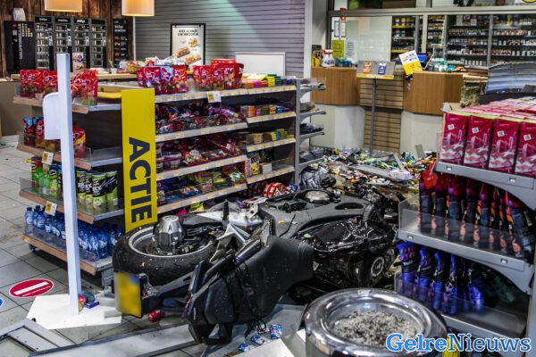 Hoe het heeft kunnen gebeuren wordt onderzocht door de politie. Het tankstation heeft flinke schade en binnen is het een ravage.