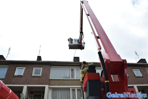 Bij aankomst bleek er een antenne deels los was geraakt door de harde wind en schreef hing richting de straatkant. De brandweer is met een hoogwerker omhoog gegaan en heeft de tv antenne van het dak afgehaald.