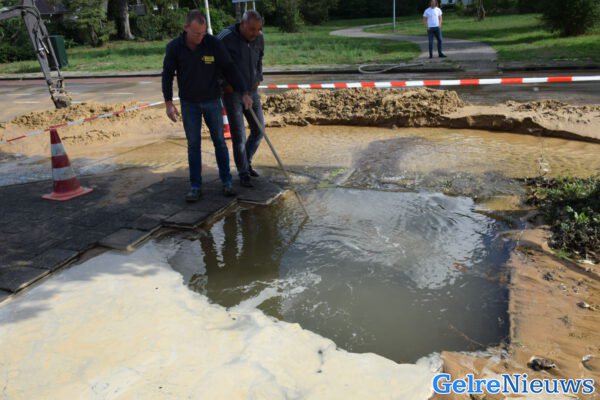 Het gebeurde op de Randwijksingel. Daar sprong door onbekende oorzaak de waterleiding. Waterbedrijf Vitens probeert het gat te dichten.
