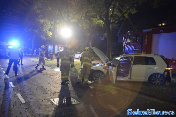 De bestuurder van de auto is ter controle meegenomen naar het ziekenhuis. Politie doet onderzoek of er alcohol in het spel is.