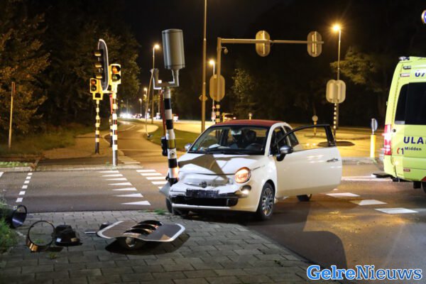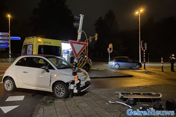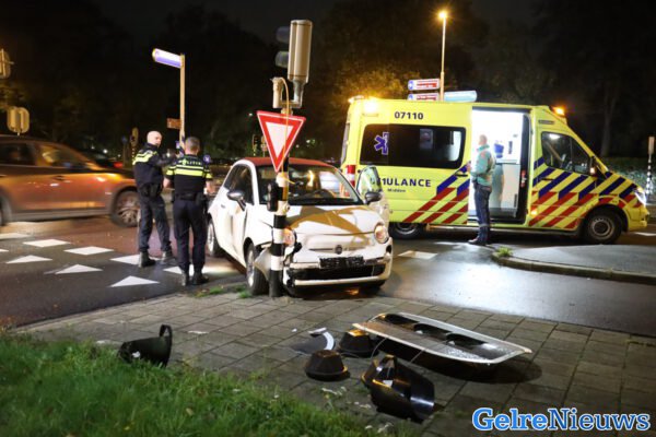 Rond 20.00 remde een auto voor het verkeerslicht wat mogelijk te laat werd opgemerkt door de bestuurster van de witte Fiat met een ongeval tot gevolg. De witte auto vloog over een verkeersheuvel en kwam tot stilstand tegen een verkeerslicht paal. De vrouw is door de ambulance naar het ziekenhuis gebracht met onbekend letsel.