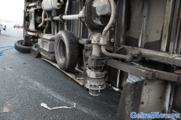 Rond 14.00 uur gebeurde het ongeluk in de richting van Knooppunt Velperbroek. Het voertuig verloor een van de wielen, waarna de bestuurder de macht over het stuur verloor. Hij kwam met de schrik vrij. Hoe het heeft kunnen gebeuren dat een van de wielen los heeft gelaten, is nog niet helemaal duidelijk.