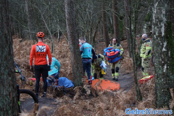 Door nog onbekende oorzaak werd de man, welke reed op het mountainbike parcours, gelanceerd over een heuvel en klapte met zijn hoofd tegen een boom.