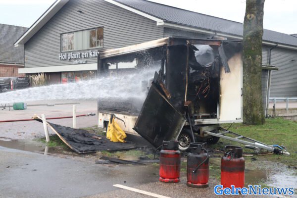 Er stonden drie gasflessen in de kar en deze zijn door de brandweer eruit gehaald en gekoeld.