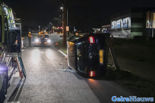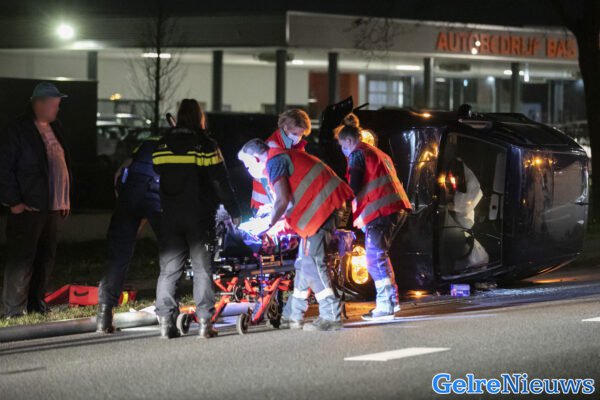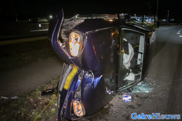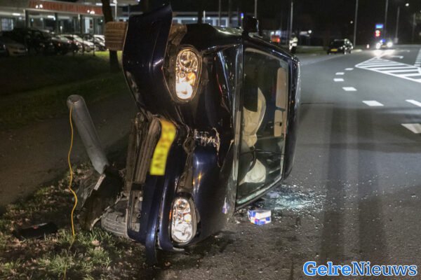 Even voor 20.45 uur gebeurde het ongeluk. Ter plaatse bleek een automobilist van de weg te zijn geraakt, een lantaarnpaal uit de grond te hebben gereden, waarna het voertuig op zijn zijkant tot stilstand kwam op de weg.