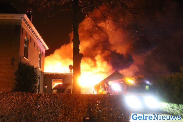 Even voor middernacht werden de hulpdiensten opgeroepen. Achter een vrijstaande woning stond een grote loods volledig in brand. De brand ging gepaard met veel rook. Een aantal gasflessen zijn tijdens de brand geëxplodeerd.