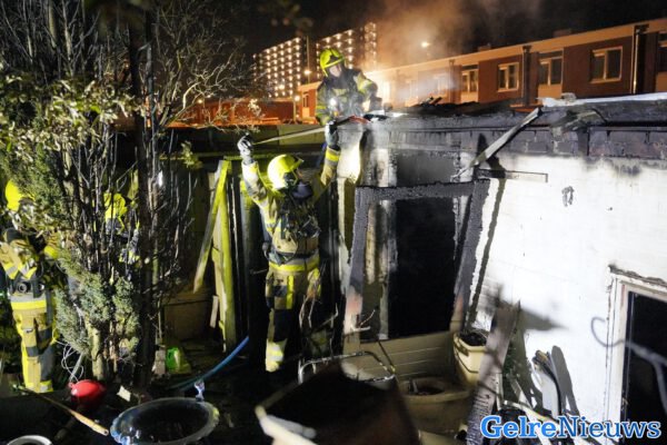 NIJMEGEN – Achter een woning aan de Doorwerthstraat in Nijmegen heeft in de nacht van zondag op maandag een fikse brand gewoed in een schuur.