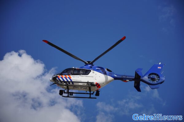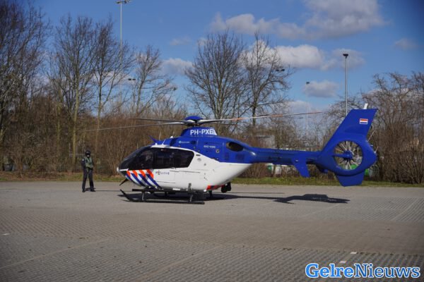 BEMMEL – De politiehelikopter (PH-PXE) is vrijdagochtend geland op het parkeerterrein van een sportpark in Bemmel.