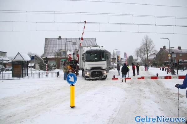 RHEDEN – Een vrachtwagen is maandagmiddag vast komen te zitten in de sneeuw op de spoorwegovergang bij de Groeneweg ter hoogte van het station van Rheden. Het treinverkeer is hierdoor enige tijd gestremd.