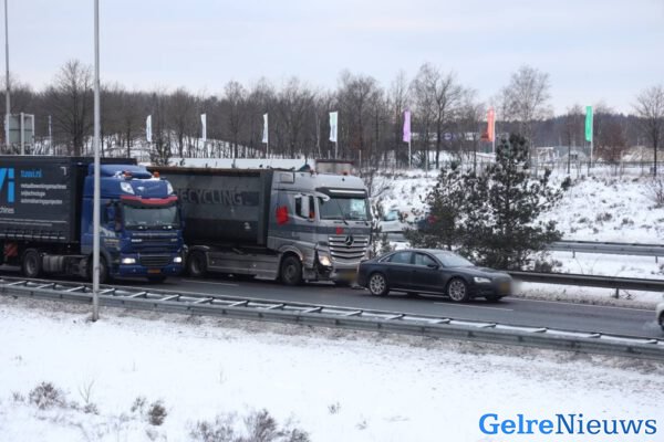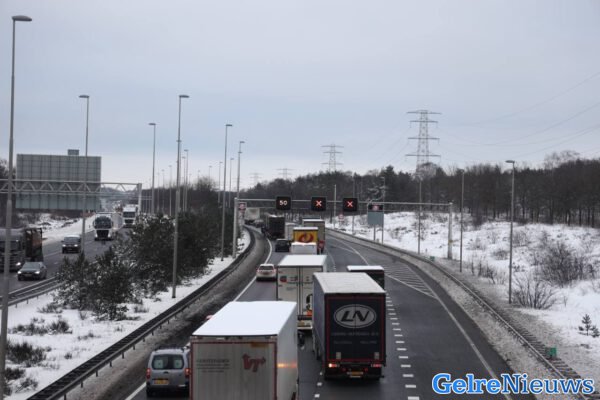 Door het slecht wegdek door de vrieskou waren er twee rijstroken afgesloten en op de beschikbare rijstrook botste vervolgens ook nog een vrachtwagen achterop een auto. Het verkeer stond direct vast en er ontstond en lange vertraging.