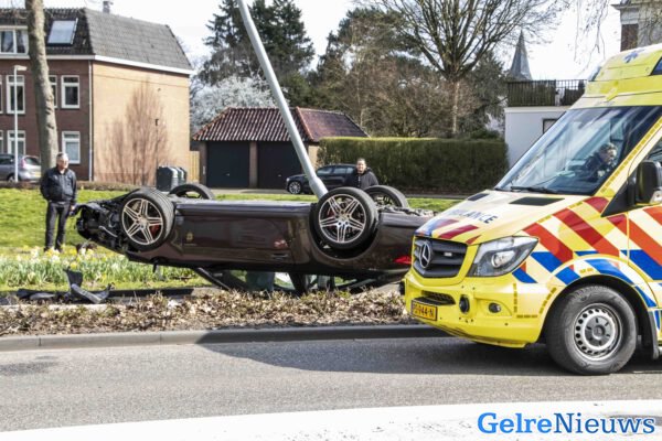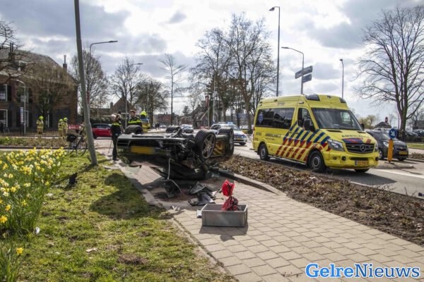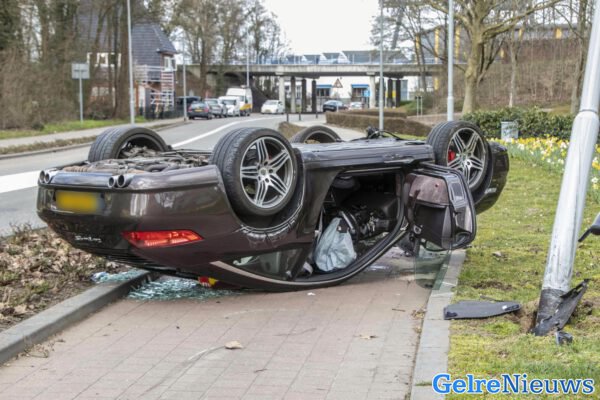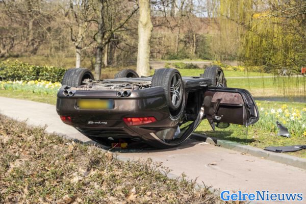 Porsche over de kop bij ongeval Doesburg, man gewond