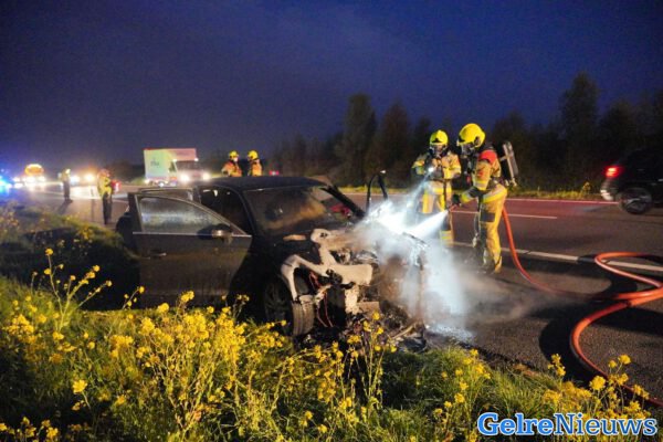 Auto brand volledig uit op A73 ter hoogte van Malden