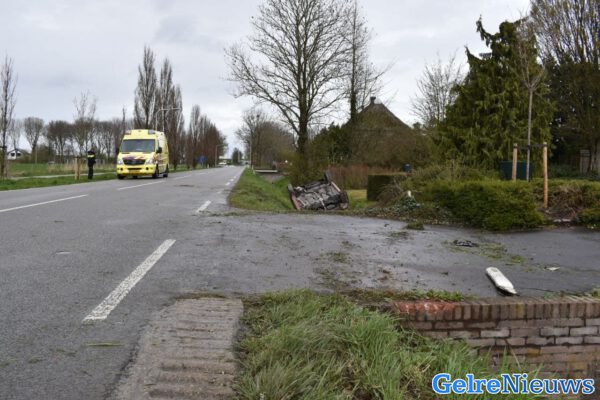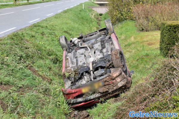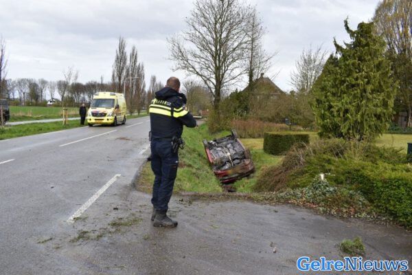 Auto op kop in sloot bij Doornenburg: “het gaat vaak mis op deze weg”