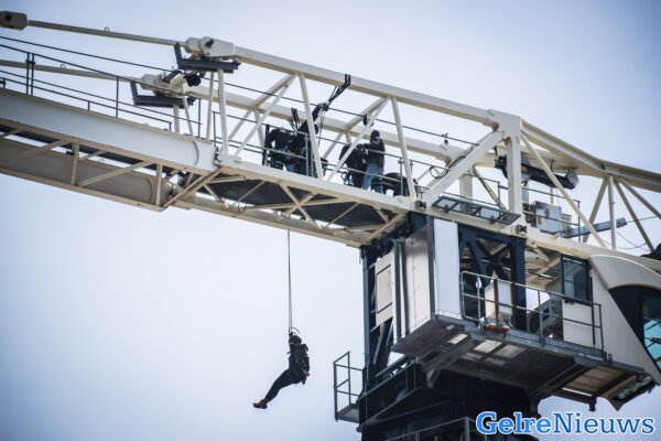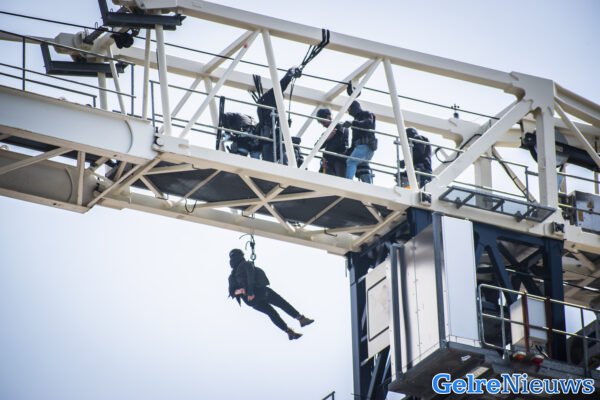 Demonstranten op bouwkraan: arrestatieteam in actie