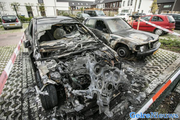 Rond 1.45 uur werd de brand ontdekt bij een auto. Toen de brandweer aankwam stonden de naastgeparkeerde voertuig ook al in lichterlaaie. Ze hebben het vuur snel geblust, maar beide voertuigen moeten als verloren worden beschouwd. Mogelijk is brandstichting de oorzaak. De politie heeft de auto’s afgezet voor sporenonderzoek van de technische recherche.
