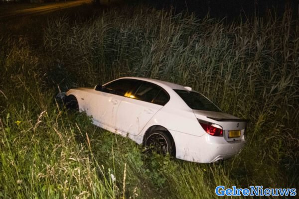 DIEREN – In de nacht van vrijdag op zaterdag is op de rotonde van de Kanaalweg met de Imboslaan in Dieren een auto uit de bocht gevlogen en in het riet langs het kanaal beland.