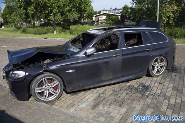 De in brand gestoken auto is een BMW met Duits kenteken. Volgens de politie is het niet duidelijk waarom deze auto getroffen is.