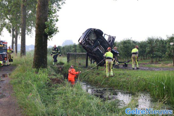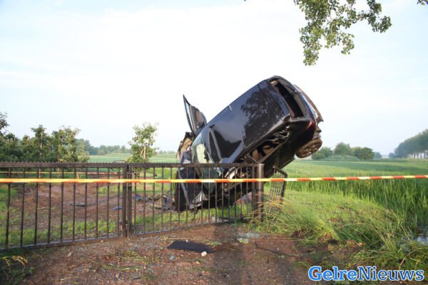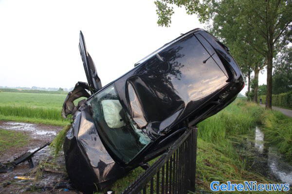 Het ongeval gebeurde rond 06.00 uur, waarna de hulpdiensten massaal werden opgeroepen waaronder een traumahelikopter. Deze werd aanvliegend geannuleerd. De bestuurder van een personenauto verloor de macht over het stuur en belandde in de berm. Vervolgens schoot hij over een sloot en kwam tot stilstand bovenop een hekwerk van een boomgaard. De man kwam bij het ongeval met de schrik vrij.