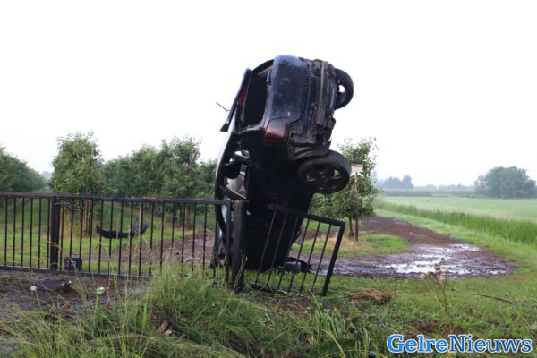 Auto belandt boven op hek in Lienden