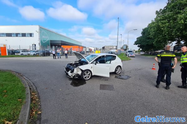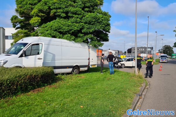 ELST – Op het industrieterrein van Elst heeft maandagochtend een aanrijding plaatsgevonden tussen een bestelbus en een personenauto.