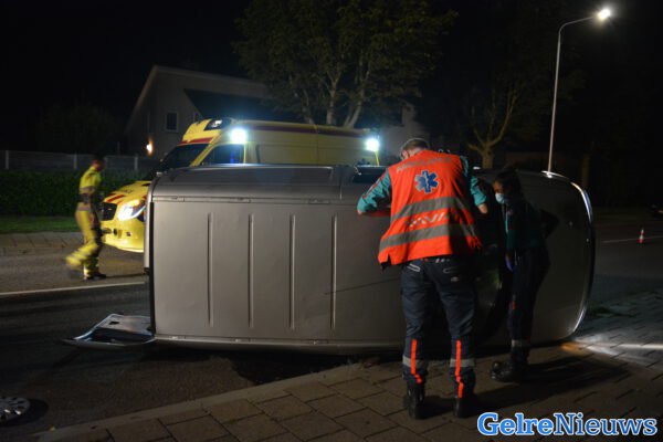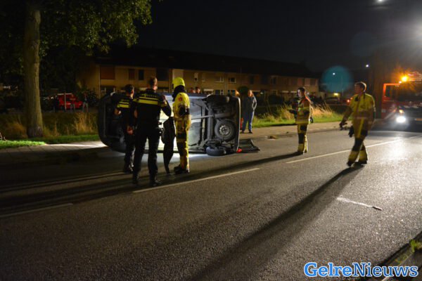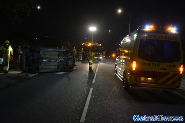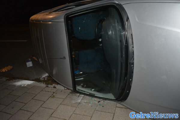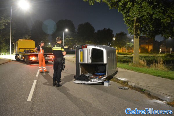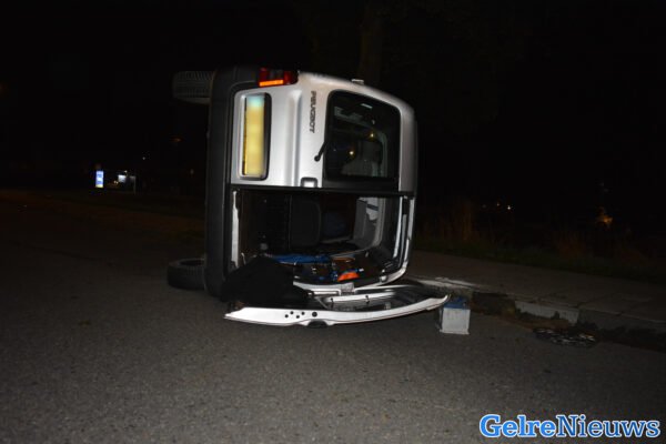 Het ongeval gebeurde rond 00.30 uur, waarna de hulpdiensten groots uitrukten. Getuigen hoorden de bestelauto slippen en zagen het voertuig op de zijkant slaan. De beide inzittenden klommen via de zijdeur het voertuig uit en sloegen op de vlucht. De brandweer keek het voertuig na en koppelde de accu los.