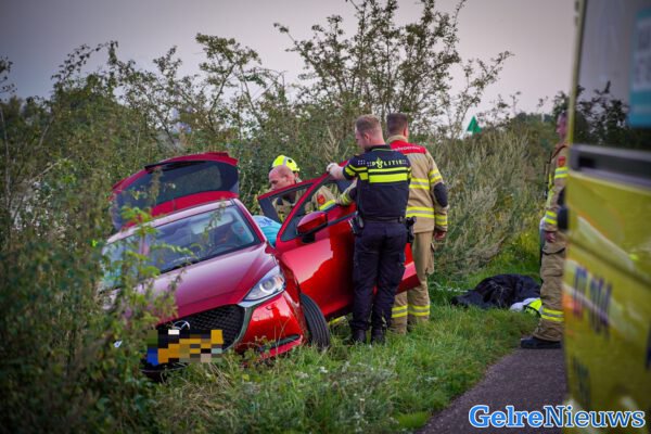 VELP – Zaterdagavond zijn de hulpdiensten uitgerukt om een bejaarde vrouw uit een auto te bevrijden. De auto raakte van de weg op de Lathumse Veerweg in de uiterwaarden bij Velp.