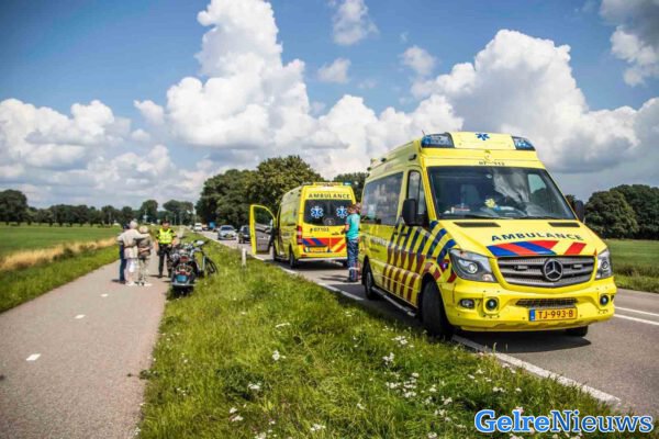 Even na 13:35 uur kwam de melding binnen, waarna de politie en twee ambulances met spoed ter plaatse kwamen.  Een scooterrijder bleek een groepje fietsers in te willen halen, maar hij werd onwel. Hij reed hierdoor één van de fietsers aan.  Zowel de bestuurder van de scooter en de bestuurder van de fiets kwamen ten val. Beide personen raakte gewond.