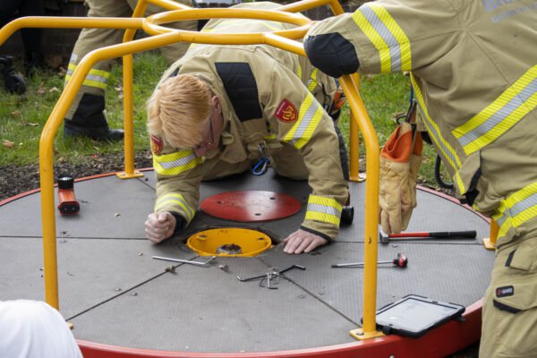 VELP – Op de Nieuwstraat in Velp heeft de brandweer vrijdagmiddag een cavia gered uit een speeltoestel.