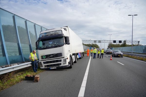 ARNHEM – Een vrachtwagenchauffeur is donderdagmiddag tegen de vangrail gebotst op de A12 bij Arnhem, boven knooppunt Velperbroek. Hierdoor staat er een flinke file vanaf de Duitse grens.