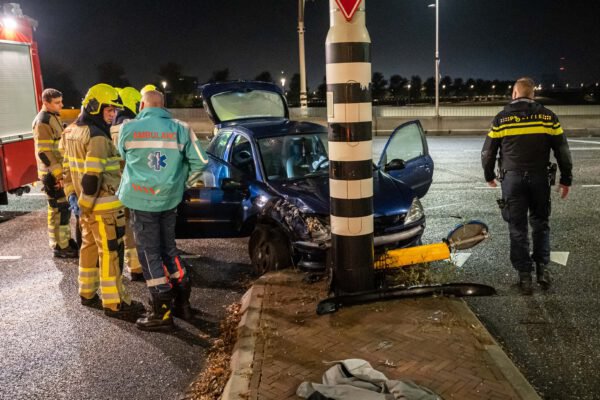 NIJMEGEN – Op de krusing Waalbrug met de Turennesingel in Nijmegen botste zondagochtend een automobilist tegen een verkeerspaal.