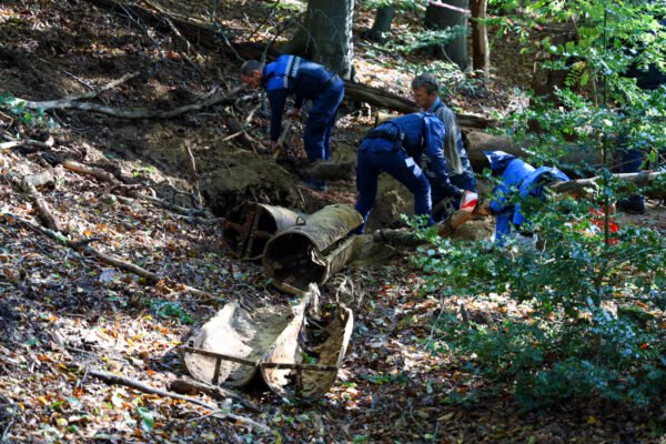 Er bleken opslagcontainers in de grond te zitten die in de tweede wereldoorlog werden gebruikt voor het droppen van munitie, wapens en bijvoorbeeld voedsel. In totaal zijn er vijf opslagcontainers uit de grond gehaald en meegenomen naar het bureau.