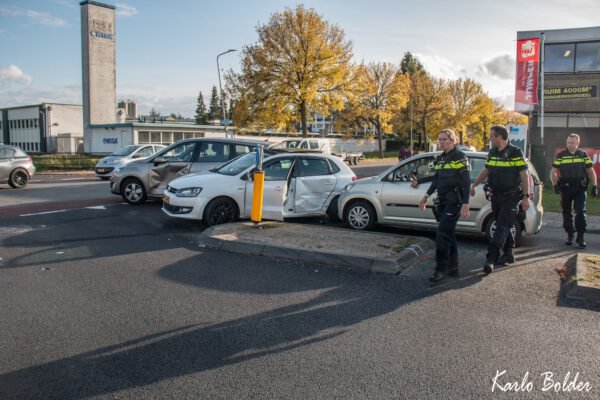 ARNHEM – Op de kruising Driepoortenweg met de Pieter Calandweg in Arnhem zijn maandagmiddag vier auto’s met elkaar in botsing gekomen.