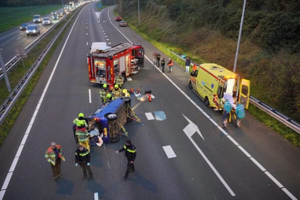 De mevrouw werd met onbekend letsel naar ziekenhuis gebracht. Het tweede voertuig had volgens de politie ook schade opgelopen en stond iets verder op de snelweg. De bestuurder daarvan kwam met de schrik vrij.