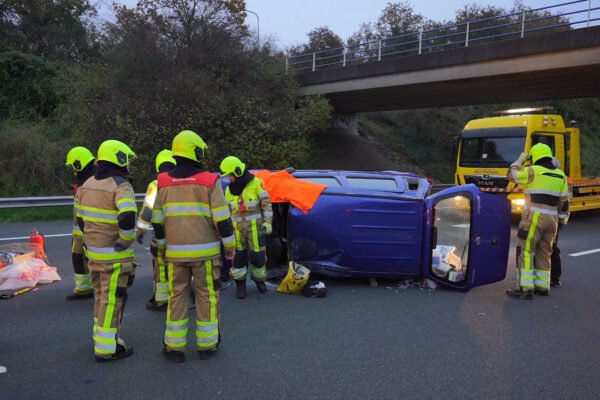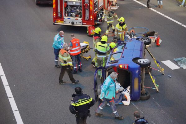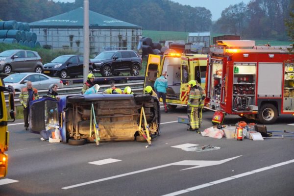 Bij het ongeval waren twee auto’s betrokken. Hoe het ongeval kon gebeuren is niet duidelijk. De bestuurder van de over de kop geslagen auto, zat ruim 25 minuten vast in haar voertuig. Ze zat volgens brandweer niet bekneld, maar kon het voertuig ook niet zelfstandig verlaten.